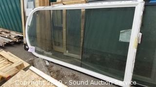 Item Description:  Some are like new, still in original  packaging. The newer looking ones have a  black metal frame, 4 are 71-1/2" x 29-1/2", 1  is 47-1/2" x 23-1/2", (1) 47-1/2" x 41", (1)  36" x 47-1/2" & (1) 35" x 47-1/2". Large  arched window 47-1/2" x approx. 9'ft, 46-1/2"  x 71-1/2", (2) 48" x 71-1/2".