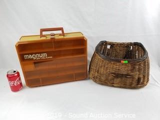 Lot #0220: Fishing Creel & Plano Magnum Tackle Organizer
