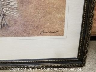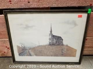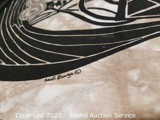Lot Details: One is not framed. Includes Viking ship tapestry signed Heidi Lange, one is titled "The Cross Chester" by Alan Stuhle, log cabin signed L.Gibbs and church signed Ronald Woodall. Smallest is 10" x 12", largest is 13" x 15".