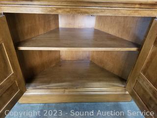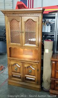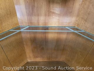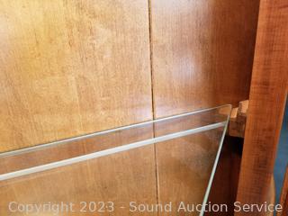 Lot Details: Glass shelf, plate grooves. In excellent condition. 74" H x 34" W x 16".