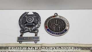 Lot #0227: Sterling Silver Military Pendant & Rife Pin