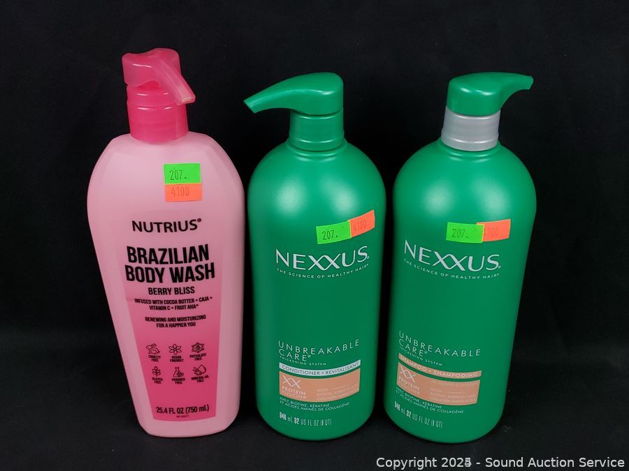 25.4oz Nutrious Brazilian Body Wash, 32oz Nexxus Shampoo & Conditioner Unbreakable. All bottles are full or mostly full.