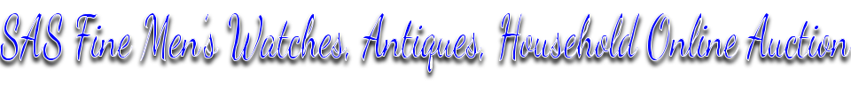 SAS Fine Men’s Watches, Antiques, Household Online Auction BIDDING NOW! Lots Start Closing 5:30 PM Tues. Jan. 6th. Preview: Online or in person Tues - Sat, 9:AM-5:30PM, must know what auction, lot numbers & items you would like to preview. Payment Methods: Credit Cards on file will be run after the close of the auction. Buyer's Premium: 20% Shipping: Sound Auction Service will provide shipping on most smaller items with appropriate handling charge. We will use USPS Flat Rate, FedEx Home Delivery or Media Mail. Fragile items, including framed art, china, porcelain or glass, should be consulted prior to purchase. Most larger items and fragile items can be handled by Pack & Ship in Lacey, WA upon request, Phone: 360-923-9551. Credit cards on file will be billed for shipping and handling. Tracking information will be emailed to the email on file. To obtain shipping you must email your request to cory@soundauctionservice.com, click on the “Contact Us” tab or reply to invoice email. Delivery: Can be arranged through American Moving Company. Contact Neil Radford at Phone: 206-747-3611, Website: AmericanMovingCompany.net. Freight: Large items can be shipped through Sweetwater Transport LLC. Phone: 360-233-2100. Removal: Please check in at main building first when picking up your items. All items will be brought to you at the door. Pick up times for this auction are Wed. 01/07, Thur. 01/08, Fri. 01/09, Sat. 01/10, 9:AM-5:30PM. Always closed Sundays & Mondays. All items must be removed no later than 5:30 pm (PT) on Sat. 01/10. All items that are not picked up during allotted pick-up period will be forfeited!!! |
