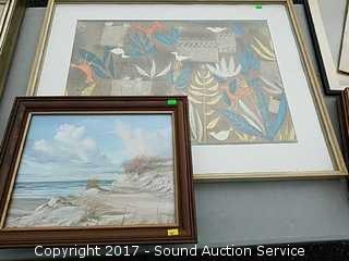 Lot #0145: Beach Print & Abstract Bird Watercolor