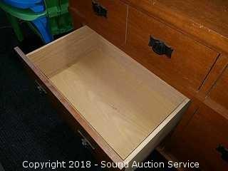 Has some light scratching on top. Approx. 34" tall, 59" long and 19" deep.