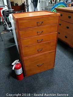 Bottom drawer is a filing cabinet, top 4 drawers are just drawers, have wood dividers. Approx. 36" tall, 21" wide and 17" deep.