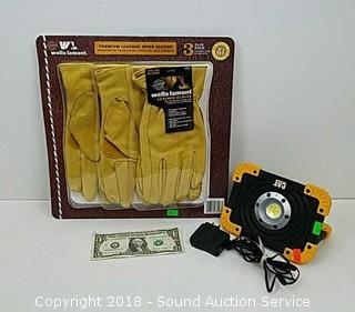 Lot #0165: CAT Rechargeable LED Work Light & Work Gloves