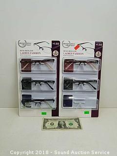 6 pairs total, each comes with a coordinating case. Includes: Semi Rimless Ladies Fashion. Refer to photos for more information.