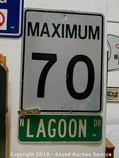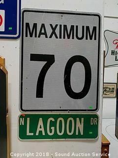 Lot #0085: Maximum 70 Sign & North Lagoon Street Sign