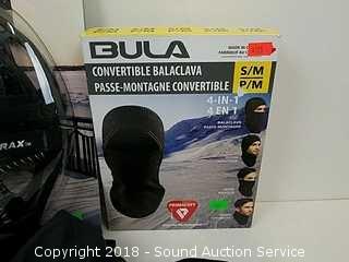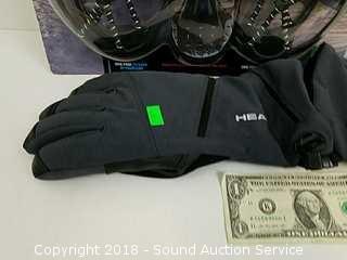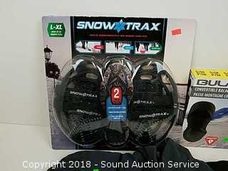 Snow trax are a 2-pack, size XL. Balaclava size small-medium. Gloves are ski gloves by Head, size large. Refer to photos for more information.