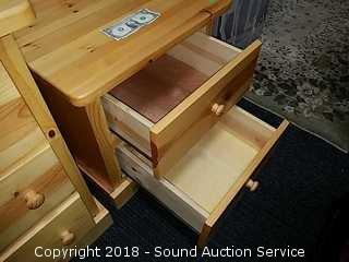 Lot #0080: Solid Pine 2-Drawer Side Table