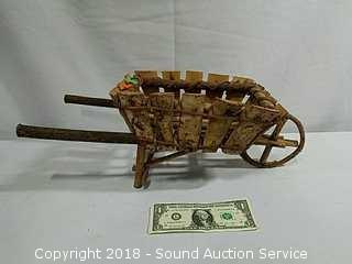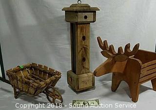 Lot #0324: Wooden Bird House & Primitive Wheelbarrow Decor
