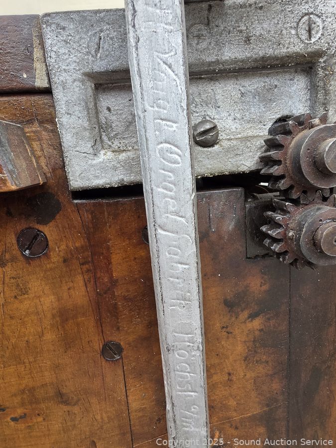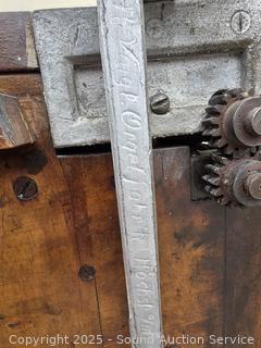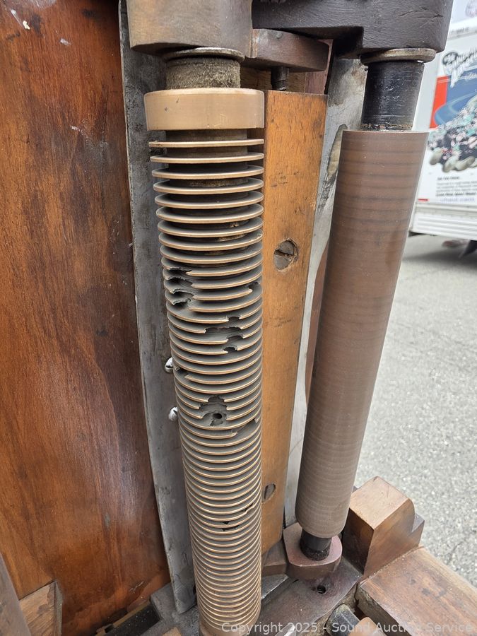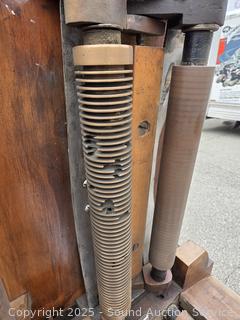 Consignor said it may be from 1890's. 2 pallets with 3 total sections, 1st drum section 78" H x 29" W x 13" D, 2nd drum section 73" H x 29" W x 18" D, pump section 76" H x 74" W x 46" D.