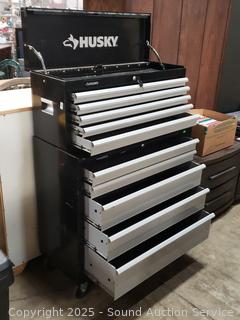 Lot #0009: 2pc Husky Locking 10-Drawer Rolling Tool Chest