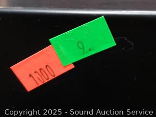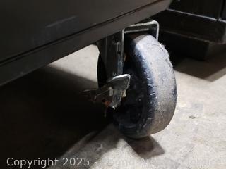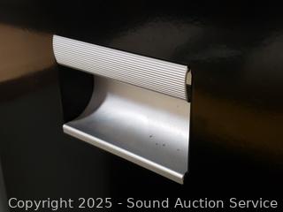 Locking with keys. Empty, each drawer is foam lined. Various scuffs, wear to finish. 52" H x 36.75" W x 12" to 16" D.
