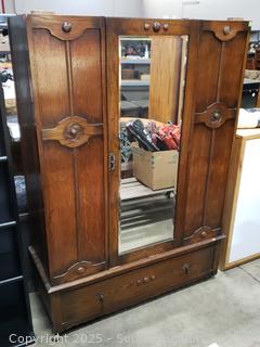 Lot #0005: Antique Quartersawn Oak Mirrored Armoire