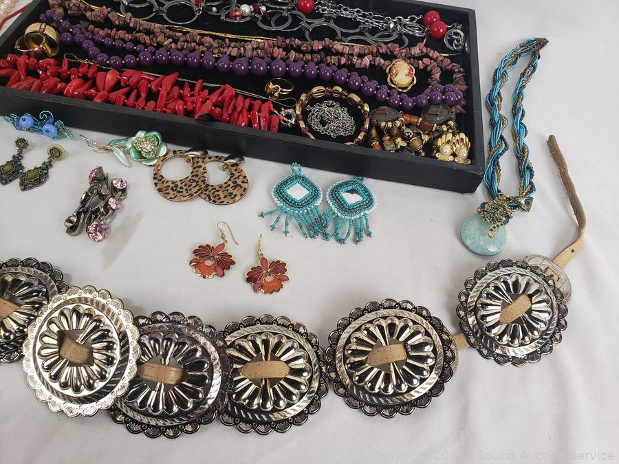 Belts, necklaces, earrings.