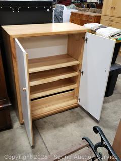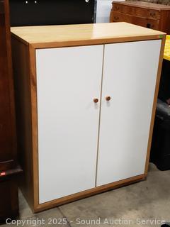 Lot #0016E: Dixie Natural Wood & White Laminate Cabinet