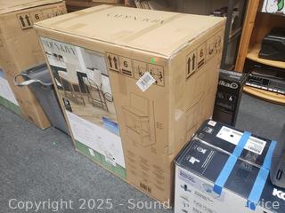 Opened to verify contents, don't see any issues. 37.7" H x 17.7" W x 21.2" D.
