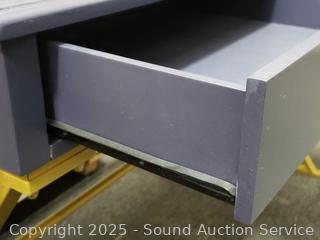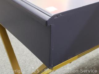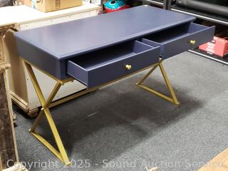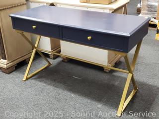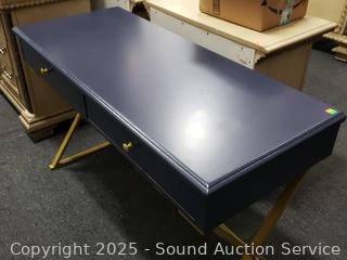 Lot #0005: 2 Drawer Blue & Gold Painted Metal Base Desk