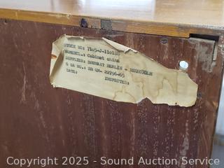 Adjustable shelves. Some minor scuffs, wear to finish. 55" H x 39-3/8" W x 13-3/4" D.