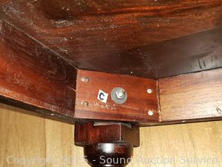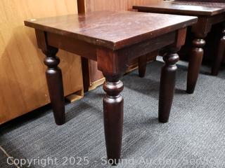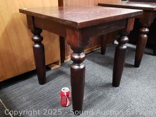 Matches the next & previous lots. Dark stained finish. 24" H x 24" x 24". Some minor scuffs, overall great condition. Well made.