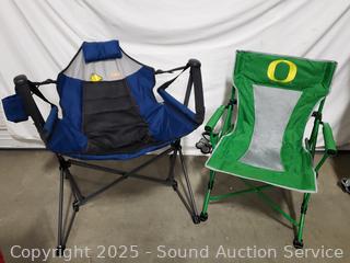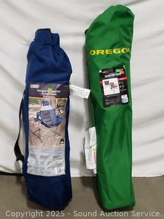 Rio Singing Hammock Chair, has some small rips on the seams, still functional. Oregon Brand Hard Armchair, don't see any issues, 350LB capacity.