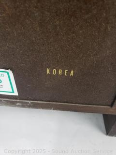 Runs for a minute then stops. Comes with key. 19" H x 11.75" W x 5" D.