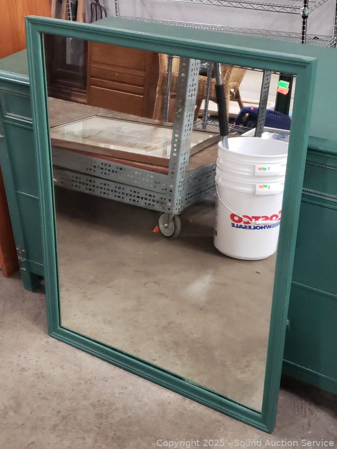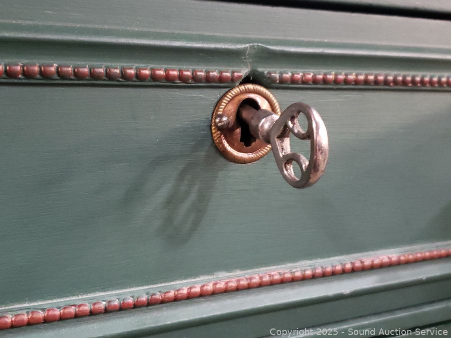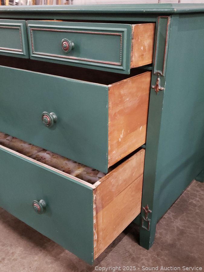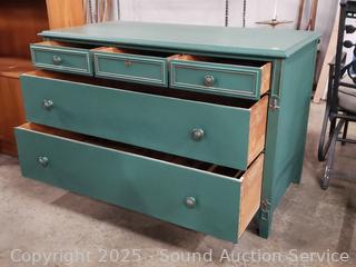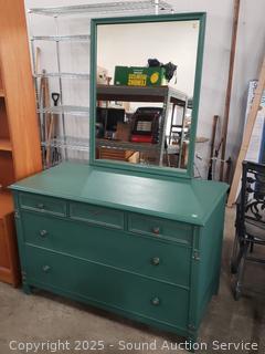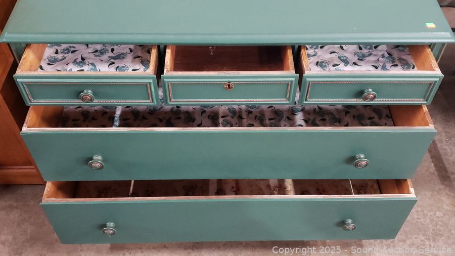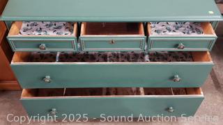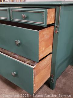 Lot #0048: 2pc Green Painted 5-Drawer Vanity Dresser