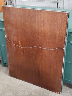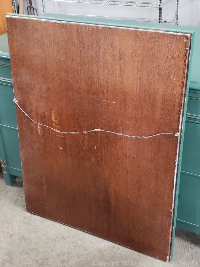Center drawer is skeleton key locking with 2 keys. Wall mount mirror, 38" x 30". All wood construction, dovetail joinery. 31" H x 48" W x 23.75" D.