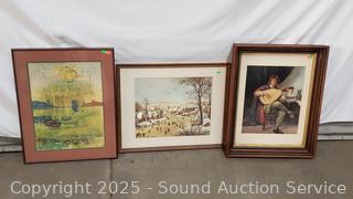 Lot #0213: 3pc Boating, Ice Skating & Bard Artwork