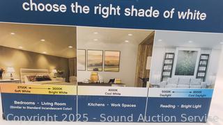 9.4W, 850LM, 2700-6500K color. All appear to be functioning as intended. One is bent out of shape, complete.
