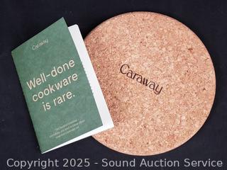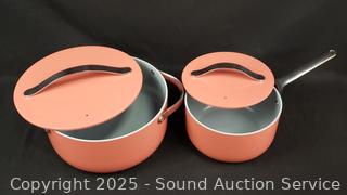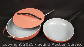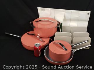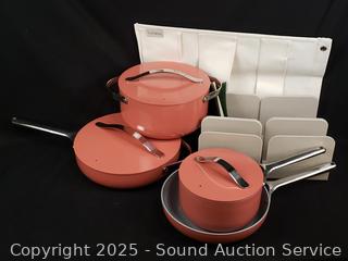 Lot #0005G: 4pc Caraway Non-Stick Salmon Cookware w/3 Lids, Racks, Manual