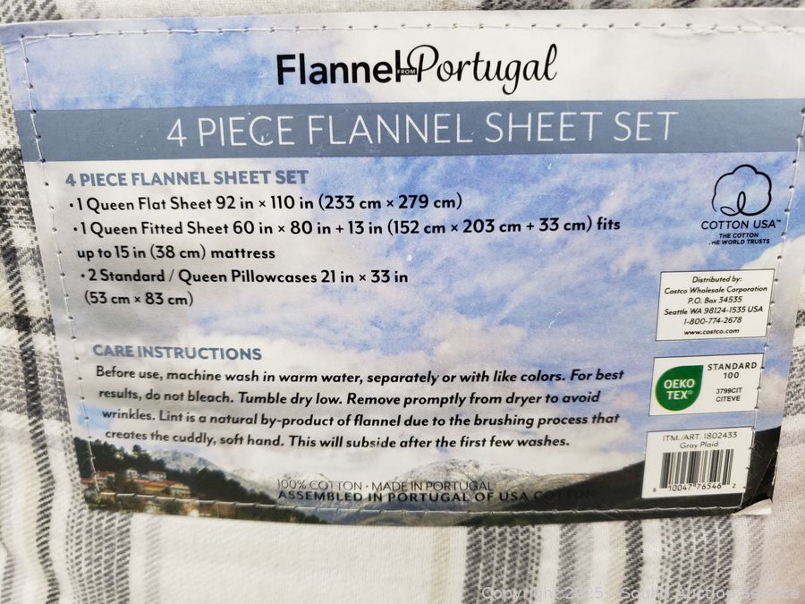Lot #0219: 4pc Flannel From Portugal Queen Sheet Set
