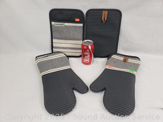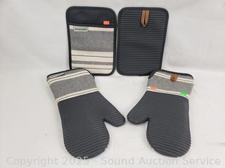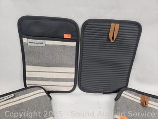 Lot #0247: 4pc KitchenAid Gray Potholder & Oven Mitts