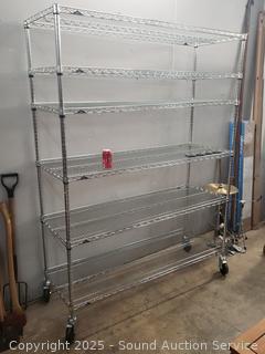 Lot #0033: 6-Tier Chrome Finish Steel Rolling Utility Rack