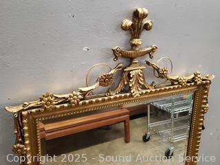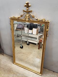 Lot #0038: Ornate Gold Wood Framed Beveled Mirror