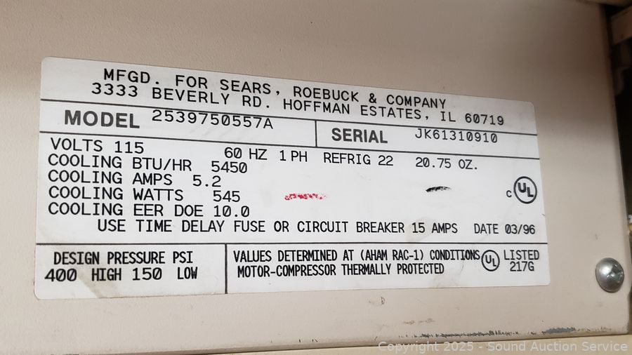 Has power, air felt like it was cold and not just blowing air. Various wear, discoloring, some damage. Approx. 13" H x 19" W x 16.5" D. Model 2539750557A.