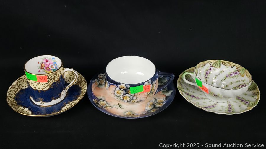 Brands include Staffordshire Crown England, Royal Albert England, Fenton Radfords "The Gatineau" England, J.P. France, Shelley England, Royal Austria, Rosenthal Donatello & others. Signs of wear from use. Don't see any major issues.