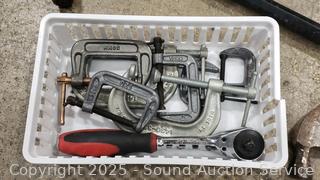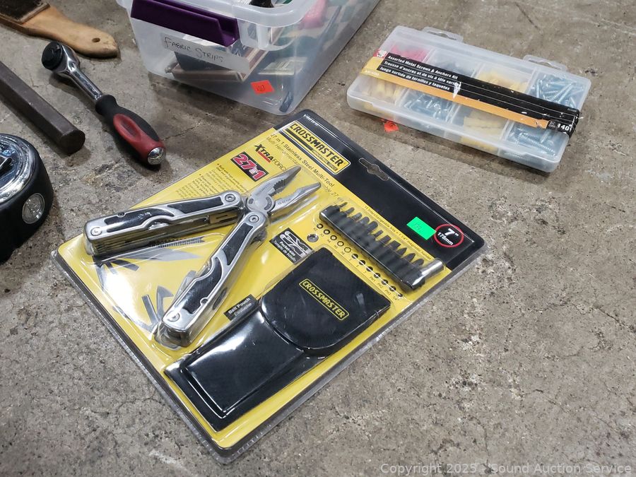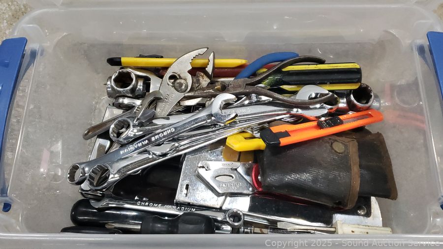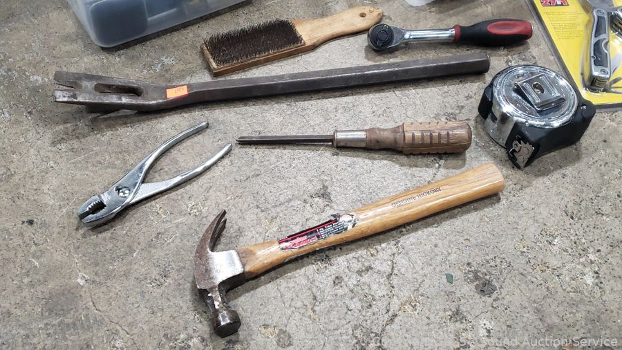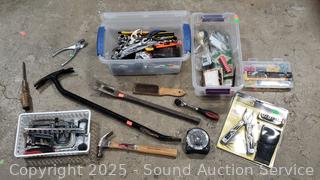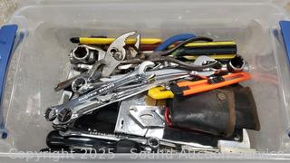 Clamps, open & box end wrenches, pry-bars, 27 in 1 multi tool (sealed, new), tape measure, pliers, screwdrivers, etc. Refer to phtoos for more details.