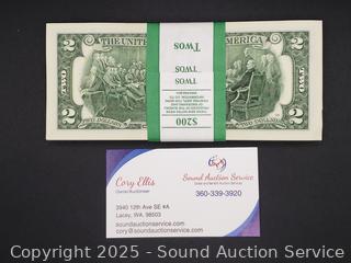 Lot #0116: $200 2017A Uncirculated Sequential Serial $2 Notes