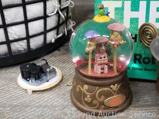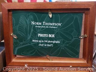 Down throw pillow, magnifying task goggles, bungie cord ball ties, photo album box, platter, hamper, travel tumbler, etc.