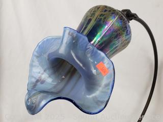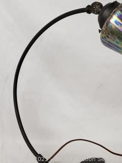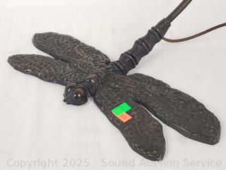Lot #0006: Art Nouveau Bronze Dragonfly Table Lamp w/Art Glass Shade