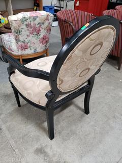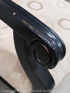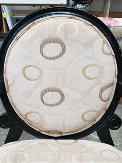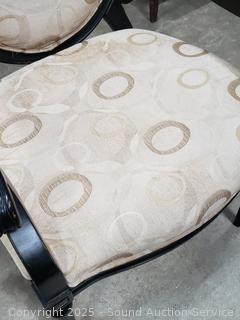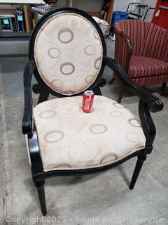 Lot #0033: Black Finish & Ivory Upholstered Accent Armchair