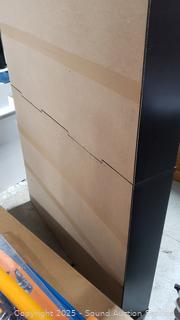 Dark simulated wood grain finish. 60.75" H x 35.75" W x 5.75" D.