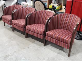 Lot #0020: Set of 4 Striped Barrel Back Accent Chairs