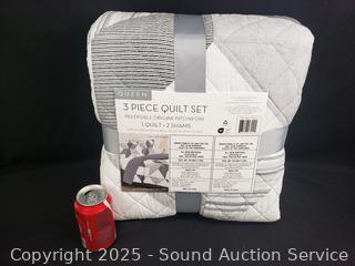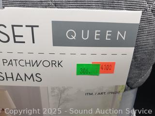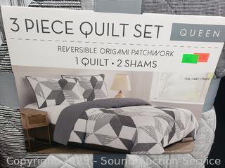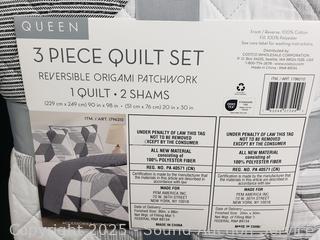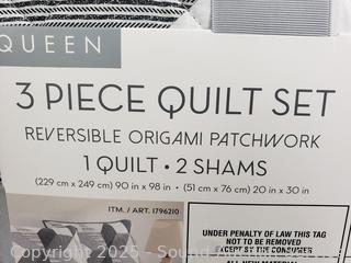 Lot #0306: 3pc Reversible Origami Patchwork Queen Quilt Set