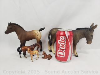 All horses are marked Breyer, could not find a mark on the donkey, looks like a Breyer. Approx. 1" to 6" tall. Don't see any major issues.