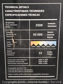 3.2" x 14.96", 33W, 2500LM, 2700K-5000K color. Appears to be functioning as intended, complete.