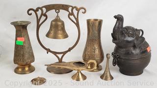 Etched vases, pot, elephant trinket box, bells, goblet etc. Refer to photos for lot contents, more details.